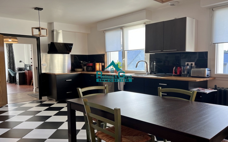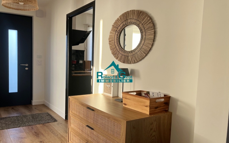 Une entrée desservant une grande cuisine dinatoire aménagée et équipée de 22 m², un salon-séjour lumineux exposé Sud-Ouest, une chambre parentale, salle d'eau, wc