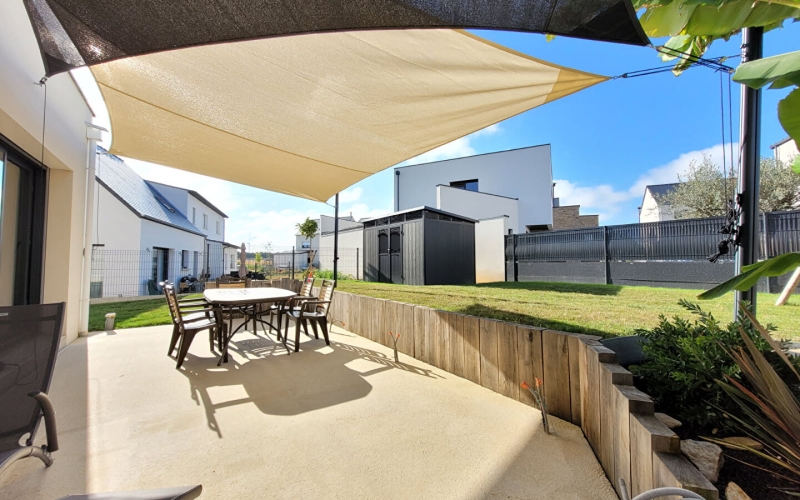 Les prestations sont soignées : les extérieurs sont achevés (enrobés et pavés côté rue, terrasse et abri de jardin côté agrément).