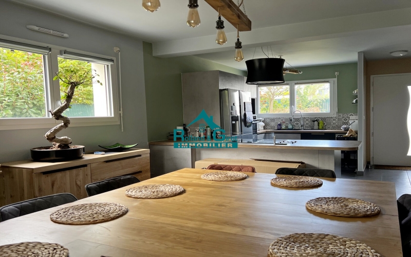 Au rez-de-chaussée, une très belle pièce de vie de 50 M² comprenant une cuisine ouverte sur sa salle à manger, le coeur de vos repas en famille ou entre amis, tandis que le salon baigné de lumière, orienté Sud-Ouest, vous invite à prolonger ces moments en ouvrant directement sur le jardin.