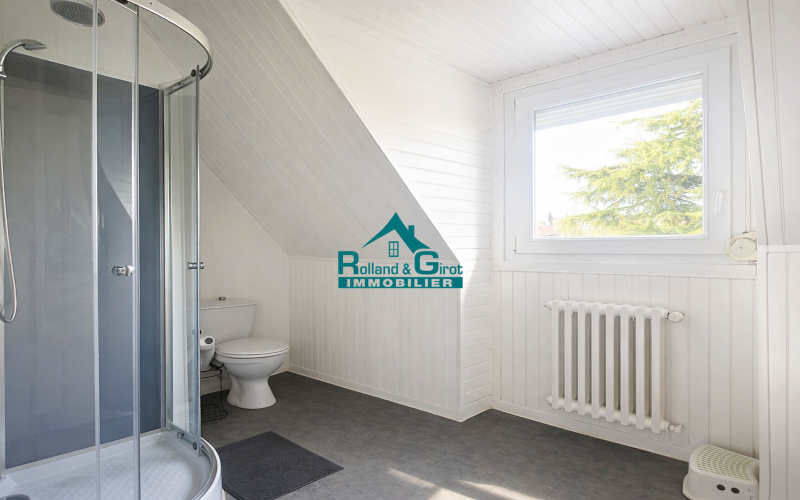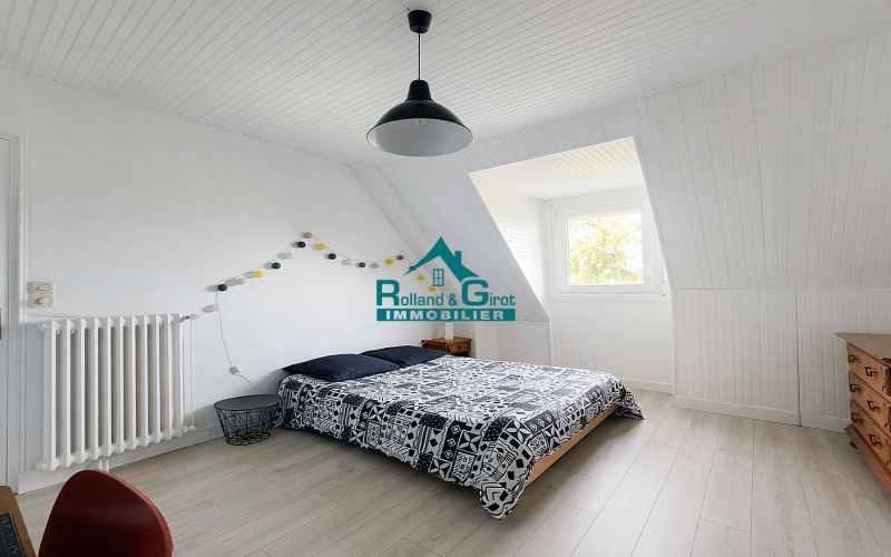 A l'étage, vous trouverez un palier desservant un grenier, deux chambres dont une avec une salle d'eau et un w.c.