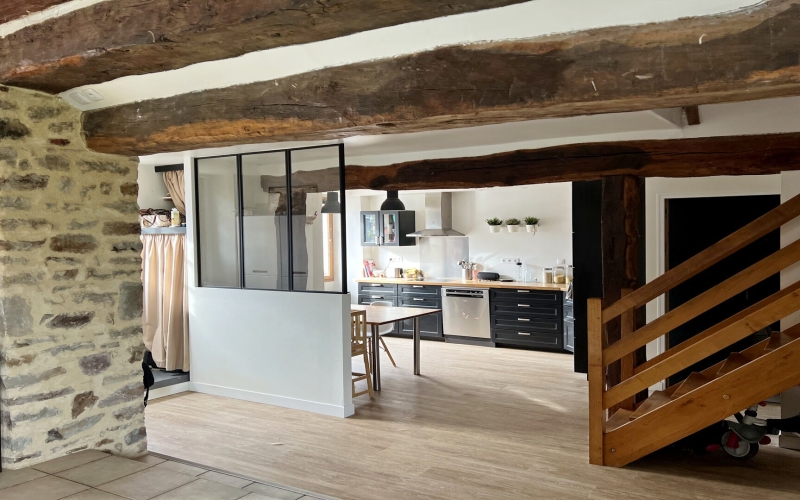 Le Cabinet Rolland et Girot vous propose en exclusivité cette charmante longère rénovée de 155 m², alliant authenticité et confort moderne, implantée sur un agréable terrain arboré de 530 m².