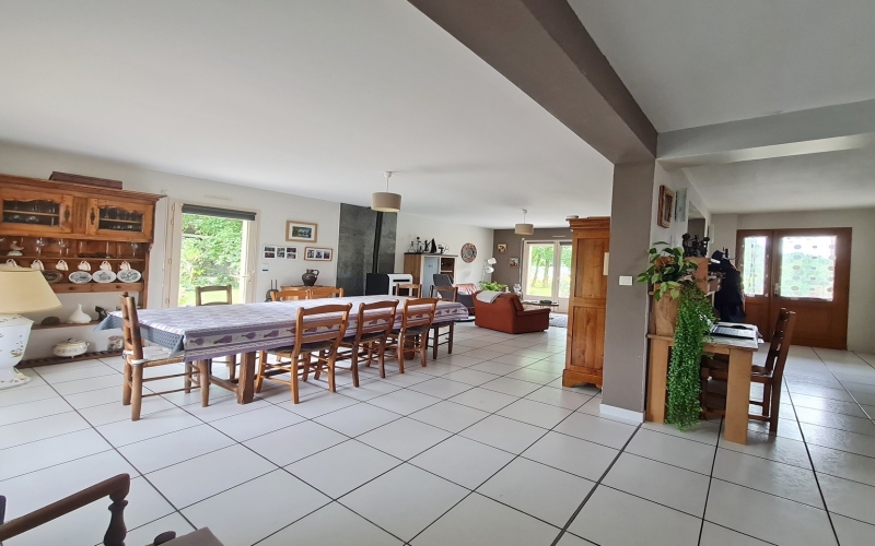 SOUS OFFRE ACCEPTEE : Maison d'habitation située en campagne de Mézières sur Couesnon, offrant un cadre de vie agréable sur un terrain de 2751 m². Cette maison de 193 m² comprend 8 pièces, dont 6 chambres, idéale pour une grande famille. Au rez-de-chaussée, vous trouverez une entrée, un WC, une cuisine aménagée et équipée ouverte sur un grand salon séjour lumineux avec poêle à granulés, ainsi que 2 chambres et une salle de bain, une buanderie. A l'étage, 4 chambres, une salle d'eau et un WC et un grenier. La maison est en bon état, construite en parpaing en 1999, avec des fenêtres en PVC double vitrage et des volets roulants. A l'extérieur, vous pourrez profiter d'une terrasse de 20 m² et d'une dépendance de 200 m². Située à 3 minutes de l'échangeur de l'A84 ET à seulement 2 km des commerces, à proximité des écoles, cette maison est parfaite pour ceux qui recherchent le calme tout en étant proche des commodités. Ne manquez pas cette opportunité, contactez Rolland et Girot Immobilier pour plus d'informations. (4.90 % honoraires TTC à la charge de l'acquéreur.)