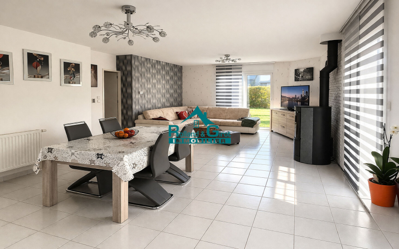 Découvrez cette charmante maison de 5 pièces, située à Saint Aubin d'Aubigné, exposée plein sud-ouest, offrant un cadre de vie calme et agréable. Cette jolie maison dispose de 3 chambres au rez-de-chaussée, d'une cuisine américaine aménagée et équipée, d'un séjour lumineux avec poêle à granulés, d'une salle de bain, d'un WC séparé. Vous serez également séduit par son beau terrain d'environ 590 m², offrant de nombreuses possibilités pour profiter du plein air : jardin, terrasse ou potager, laissez libre cours à votre créativité !. Idéalement située à seulement 0,5 km des commerces, à 2 minutes des arrêts de bus, à 15 minutes du métro, à 5 minutes des écoles, ce bien rare sur le marché est une opportunité à ne pas manquer. Prix : 325 190 euros. Référence : 5398FM. Contactez Rolland et Girot Immobilier pour organiser une visite. (4.90 % honoraires TTC à la charge de l'acquéreur.)