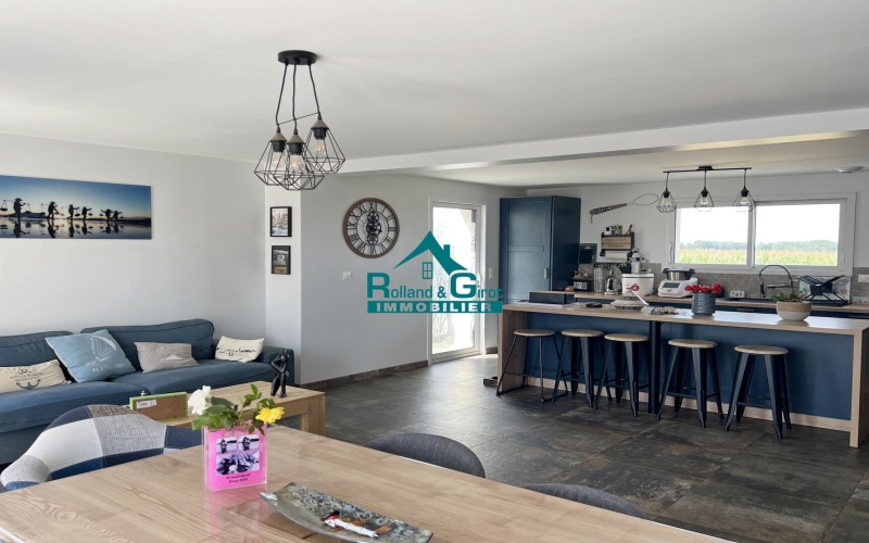 Venez découvrir cette lumineuse contemporaine composée au rez-de-chaussée d'une entrée avec placard, d'une très belle cuisine américaine aménagée et équipée ouverte sur un beau salon /séjour, d'une chambre et de sa salle d'eau attenante, d'une buanderie et d'un wc. A l'étage, vous profiterez d'un endroit calme en vous installant confortablement sur la mezzanine, ouvrant sur un couloir desservant 4 belles chambres, une salle d'eau avec double douches, un wc. Vous profiterez d'un jardin ensoleillé et clos et vous pourrez vous rafraîchir dans sa belle piscine exposée Sud. Au Nord, la vue sur la campagne vous ravira et son garage vous permettra d'y ranger votre véhicule et pourra vous servir également de stockage. Alors vite, n'hésitez à venir frapper à notre porte pour venir visiter ce nouveau petit bijou.