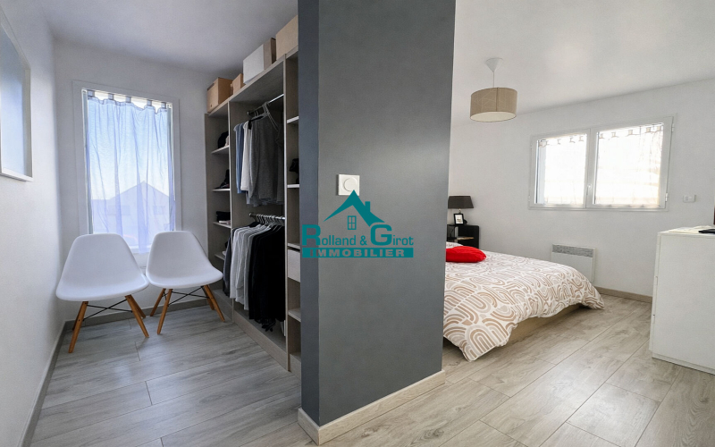 A l'étage, le palier dessert trois belles chambres avec placards dont une avec un dressing privatif faisant office de chambre parentale et offrant un espace confortable pour toute la famille. Une salle de bain vient compléter ce niveau ainsi qu'un WC indépendant.