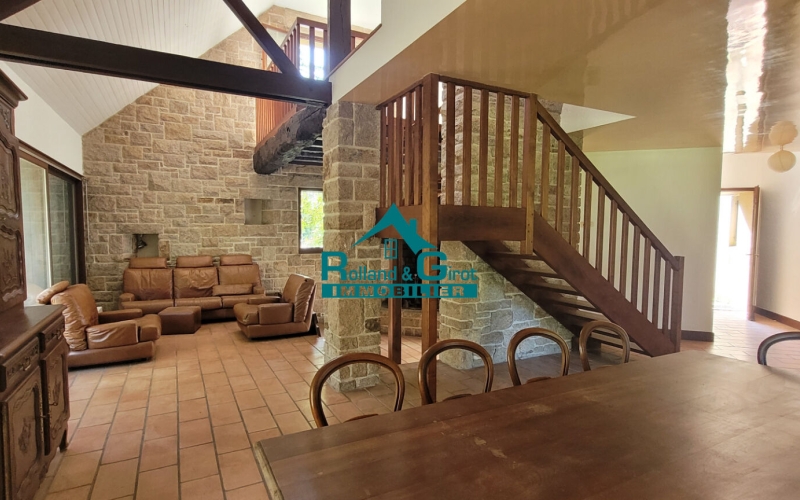 Au RDC , un vaste salon séjour avec cheminée de caractère, exposé plein sud, une cuisine dinatoire, une arrière cuisine, 1 belle suite parentale , WC.