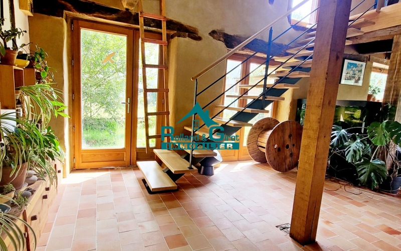 Baisse de prix !!!!!!! A 6 minutes en voiture du bourg de Saint-Aubin-d'Aubigné, cette magnifique longère rénovée avec goût et très atypique pourra vous combler de bonheur avec son intérieur chaleureux et son beau terrain de 1381 m². Au rez-de-chaussée, une entrée chaleureuse vous accueillera vous faisant découvrir une splendide pièce de vie d'environ 45m² associant l'ancien et le moderne possédant un poêle à bois, une cuisine aménagée, une chambre, une salle d'eau avec wc, une buanderie . Son escalier vous conduira sur une grande mezzanine cathédrale desservant trois chambres (dont une de 25m²), une salle de bains, un wc. Vous profiterez de son beau terrain alliant nature et tranquillité. Alors venez vite découvrir cet endroit rarissime à 5 minutes de Saint-Aubin-d'Aubigné pour y poser vos valises dès que possible.