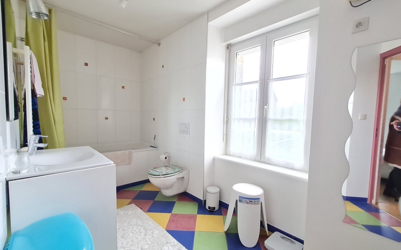 Au rez de chaussée, vous trouverez une entrée fonctionnelle avec des rangements, une cuisine équipée et aménagée, communiquant sur un salon/séjour lumineux et chaleureux avec son poêle à bois orientable et donnant sur un accès directe à la terrasse privative, WC indépendant, buanderie pouvant être transformée en salle d'eau et chambre, offrant ainsi la possibilité d'avoir une vie de plain-pied. A l'étage au-dessus du salon/séjour, une vaste pièce de 51 m² au sol avec coin nuit laisse libre votre imagination concernant ce lieu (local professionnel, bureau, salle de jeux?), et sur l'autre partie de l'habitation un deuxième escalier vous conduit à trois autres chambres dont une suite parentale avec dressing et salle d'eau privative, une salle de bains avec WC vient compléter cet étage. Un grenier non aménagée et accessible par un escalier escamotable offre encore une superficie supplémentaire.