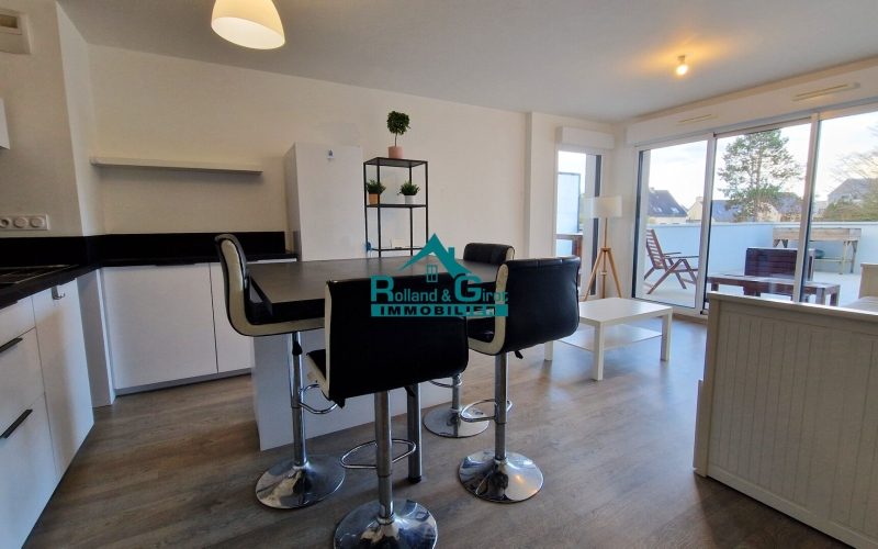 A 5 minutes à pied du centre-bourg, ne manquez pas ce lumineux appartement récent avec superbe terrasse de plus de 40 m². Situé au rez-de-chaussée d'une résidence sécurisée cet appartement comprend une entrée avec placard, un séjour avec cuisine ouverte, entièrement aménagée et équipée, une spacieuse chambre avec placard, salle d'eau avec WC.