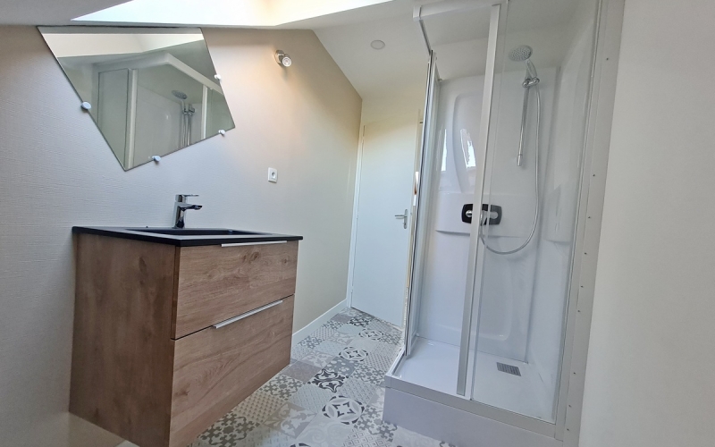Venez découvrir cet appartement duplex entièrement rénové au 1er étage, type 1bis de 37 m² situé dans le centre bourg de Saint-Aubin-du-Cormier à proximité immédiate des commerces. Il comprend une grande pièce de vie lumineuse avec cuisine aménagée et équipée (plaque, four, hotte), un espace nuit et un WC séparé. A l'étage, vous trouverez une salle d'eau. Idéal pour étudiant ou jeune actif !