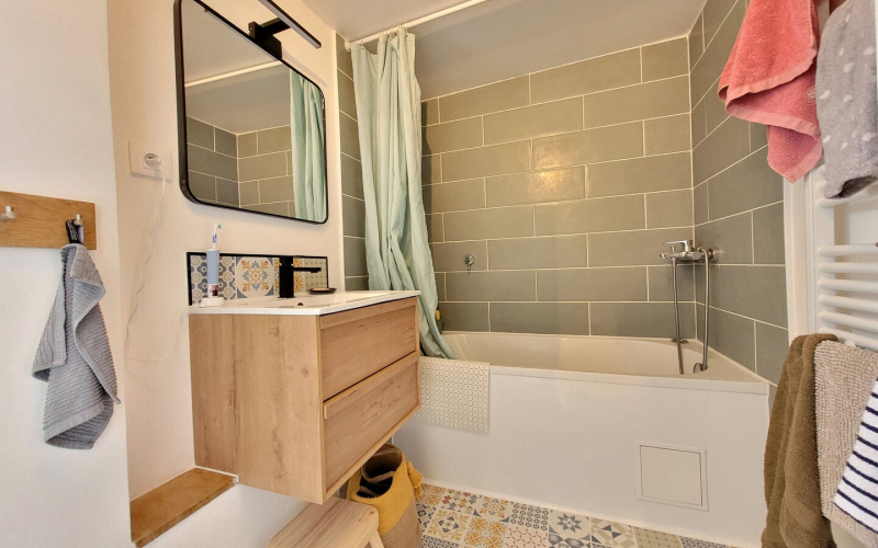Au rez-de-chaussée, vous serez séduits par un séjour lumineux avec une cuisine ouverte (aménagée et équipée). Ce niveau propose également une chambre ainsi qu'une salle de bain.