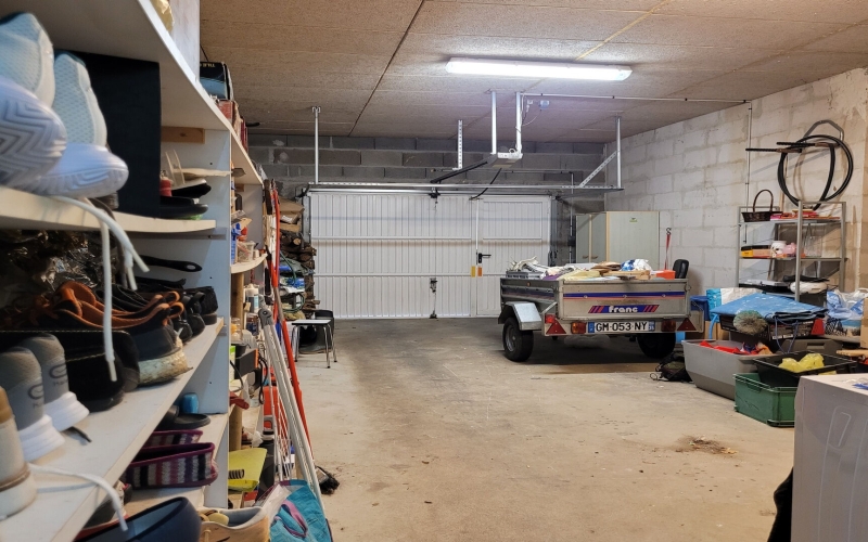 La maison dispose également d'un grand garage, pratique pour le stationnement ou le rangement.