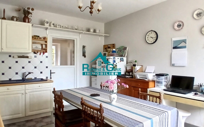 une habitation sur deux niveaux de 110 m² environ, comprenant au rdc une pièce de vie avec cheminée et insert, une cuisine, une chambre, salle de bains, des wc. A l'étage : 2 chambres, une salle de bains, des wc. Attenant, un grand cellier de 65 m² .