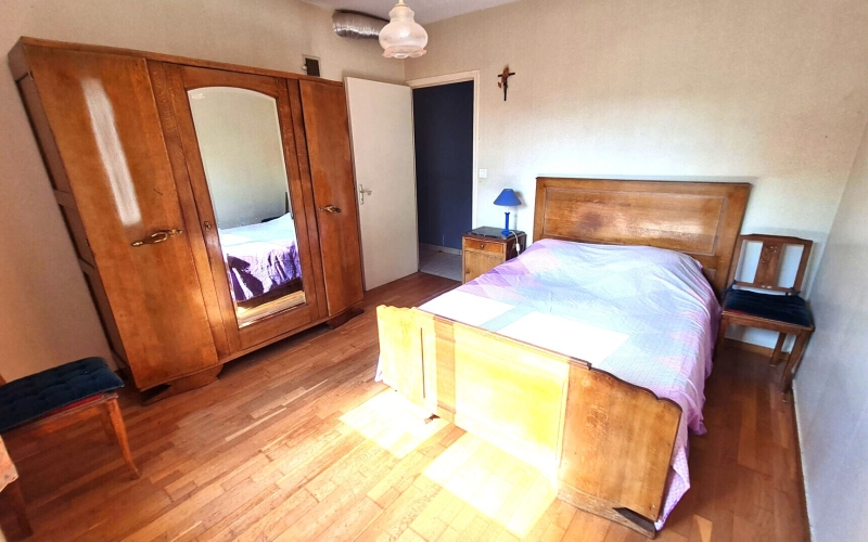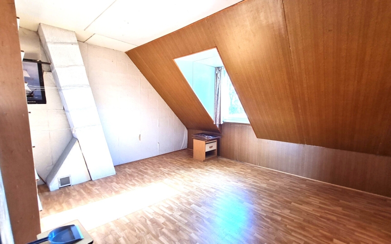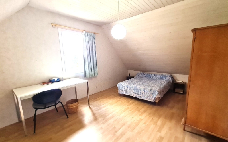 A l'étage, vous découvrirez une grande chambre d'environ 13 m², une salle d'eau avec WC, ainsi qu'un grenier facilement aménageable permettant la création de deux chambres supplémentaires.