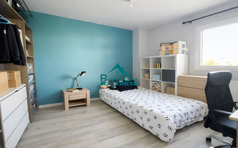 A l'étage, trois chambres modulables accueillent enfants, invités ou espaces de travail, selon l'évolution de vos projets. Une salle de bain complète ce niveau avec praticité.