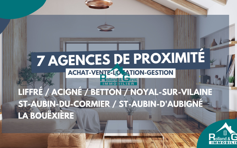 Le Cabinet ROLLAND et GIROT : c'est 7 agences de proximité, Liffré, Saint-Aubin-d'Aubigné, Acigné, Noyal-sur-Vilaine, Saint-Aubin-du-Cormier, Betton et La Bouëxière. Fort de 19 ans d'expérience, le Cabinet s'engage avec vous dans votre projet immobilier en mettant à votre disposition son professionnalisme, ses compétences et son dynamisme !