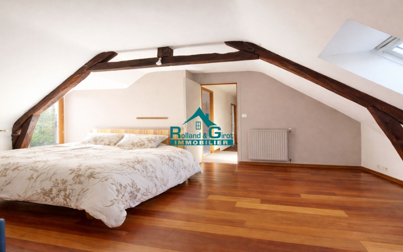 A l'étage, vous trouverez quatre chambres avec la possibilité d'une cinquième traversante, un bureau, une salle de bains et un w.c.