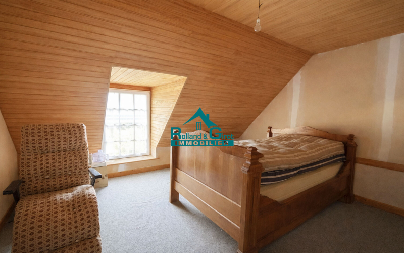 A l'étage vous trouverez un palier, trois chambres, un w.c. et un grenier.