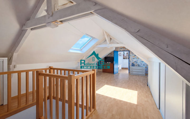 Au rez de chaussée, vous trouverez une entrée fonctionnelle avec des rangements, une cuisine équipée et aménagée, communiquant sur un salon/séjour lumineux et chaleureux avec son poêle à bois orientable et donnant sur un accès directe à la terrasse privative, WC indépendant, buanderie pouvant être transformée en salle d'eau et chambre, offrant ainsi la possibilité d'avoir une vie de plain-pied. A l'étage au-dessus du salon/séjour, une vaste pièce de 51 m² au sol avec coin nuit laisse libre votre imagination concernant ce lieu (local professionnel, bureau, salle de jeux?), et sur l'autre partie de l'habitation un deuxième escalier vous conduit à trois autres chambres dont une suite parentale avec dressing et salle d'eau privative, une salle de bains avec WC vient compléter cet étage. Un grenier non aménagée et accessible par un escalier escamotable offre encore une superficie supplémentaire.