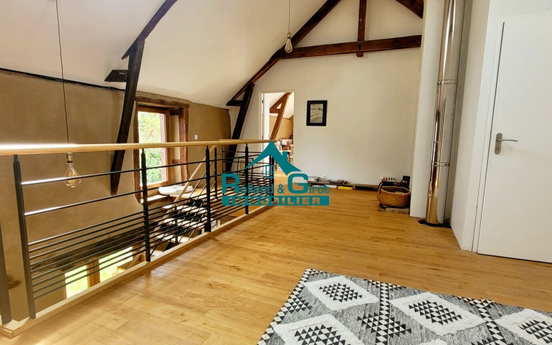 Baisse de prix !!!!!!! A 6 minutes en voiture du bourg de Saint-Aubin-d'Aubigné, cette magnifique longère rénovée avec goût et très atypique pourra vous combler de bonheur avec son intérieur chaleureux et son beau terrain de 1381 m². Au rez-de-chaussée, une entrée chaleureuse vous accueillera vous faisant découvrir une splendide pièce de vie d'environ 45m² associant l'ancien et le moderne possédant un poêle à bois, une cuisine aménagée, une chambre, une salle d'eau avec wc, une buanderie . Son escalier vous conduira sur une grande mezzanine cathédrale desservant trois chambres (dont une de 25m²), une salle de bains, un wc. Vous profiterez de son beau terrain alliant nature et tranquillité. Alors venez vite découvrir cet endroit rarissime à 5 minutes de Saint-Aubin-d'Aubigné pour y poser vos valises dès que possible.