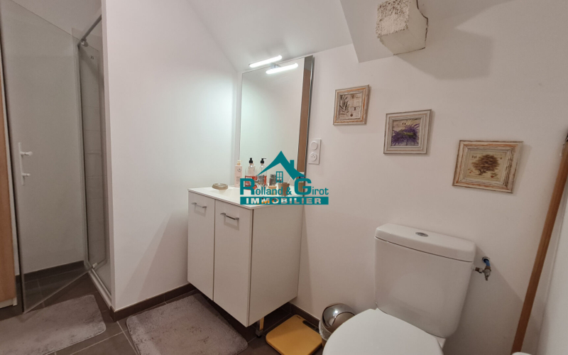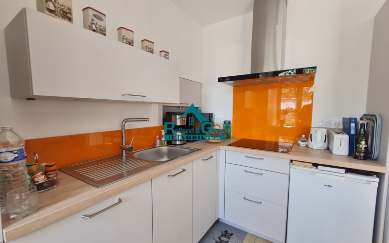 Il se compose d'une entrée avec une cuisine aménagée et équipée ouverte sur une belle pièce de vie lumineuse, d'un cellier pratique pour votre buanderie, ainsi que d'une salle d'eau et de WC.