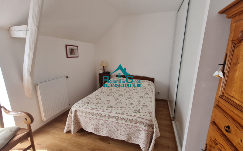 A l'étage, un dégagement dessert deux spacieuses chambres aux volumes généreux, accompagnées d'une seconde salle d'eau et d'un WC.