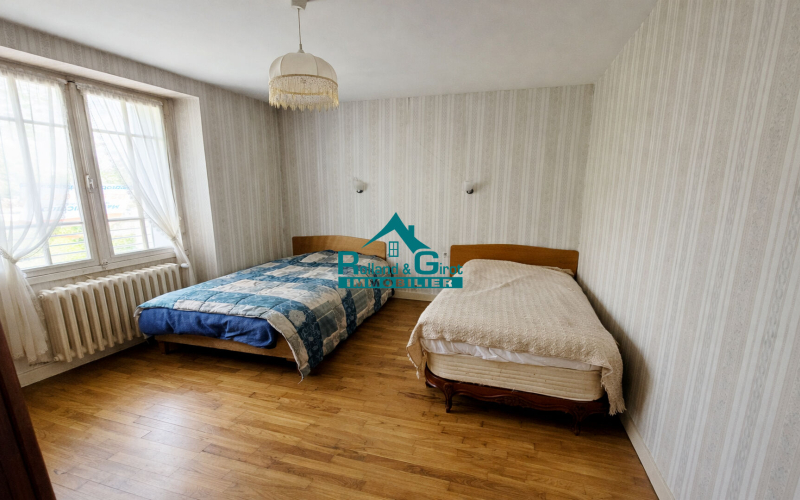 A l'étage : trois chambres sur parquet, une salle d'eau, un WC.