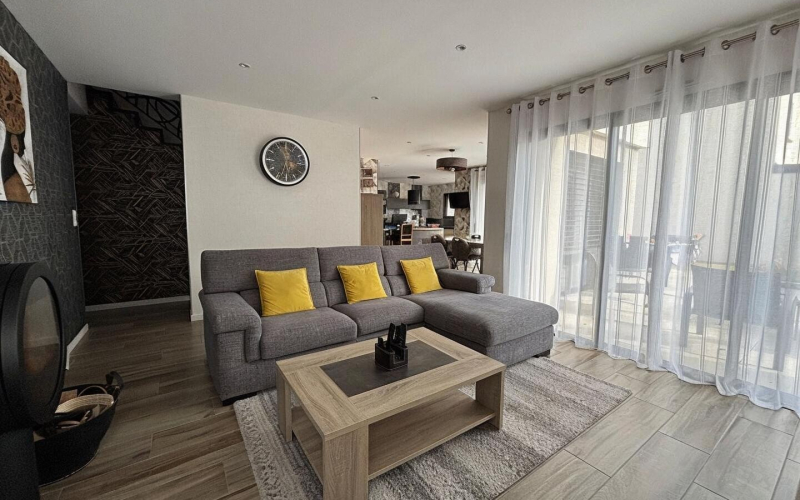 Dès l'entrée, découvrez une belle pièce de vie de 50 m², lumineuse et conviviale avec cuisine aménagée et équipée ouverte sur le salon-séjour. L'ensemble se prolonge vers une terrasse et un jardin exposés sud-ouest, parfaits pour vos moments de détente comme pour recevoir.