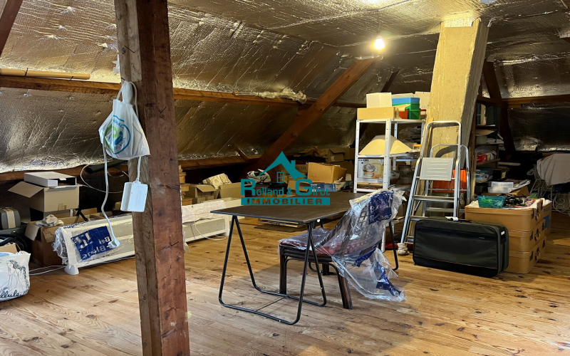 A l'étage, une mezzanine avec rangements, une belle chambre et deux espaces grenier d'environ 50 m² offrent de nombreuses possibilités d'aménagement pour créer chambres supplémentaires, bureaux ou espaces de jeux. Un garage complète ce bien fonctionnel.