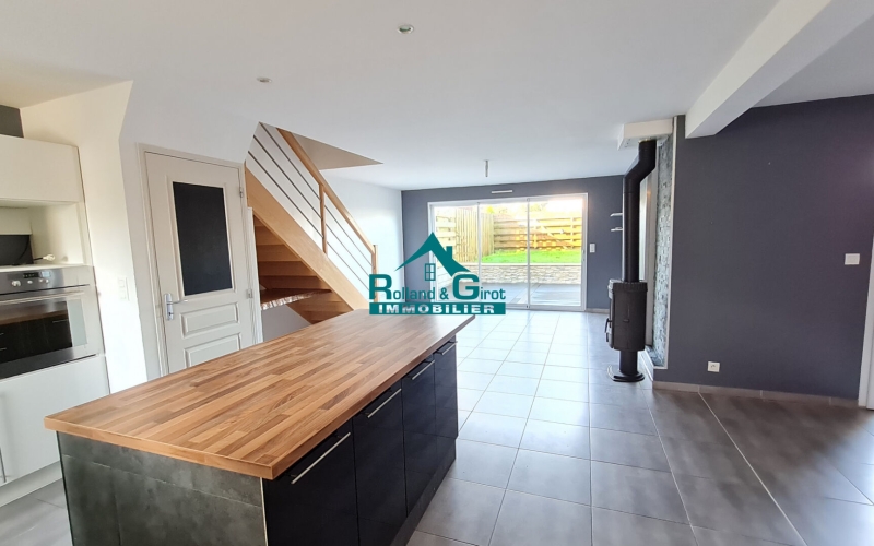 Elle comprend au rez-de-chaussée d'une entrée avec placards, une cuisine aménagée et équipée ouverte sur un salon séjour avec poêle à bois, WC séparé. A l'étage le palier dessert 3 chambres dont une avec placard, une salle d'eau avec WC.