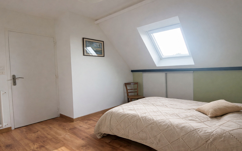 A l'étage, vous trouverez un palier desservant un grenier, deux chambres dont une avec une salle d'eau et un w.c.