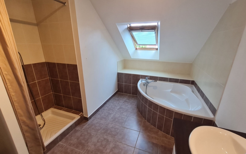 Une salle de bains avec douche et baignoire et un wc séparé.
