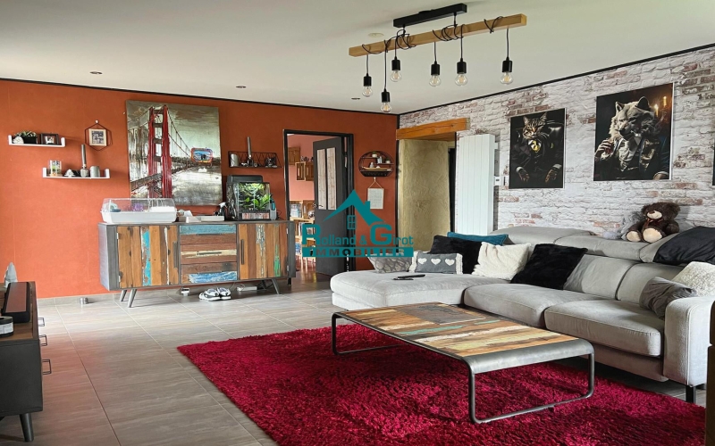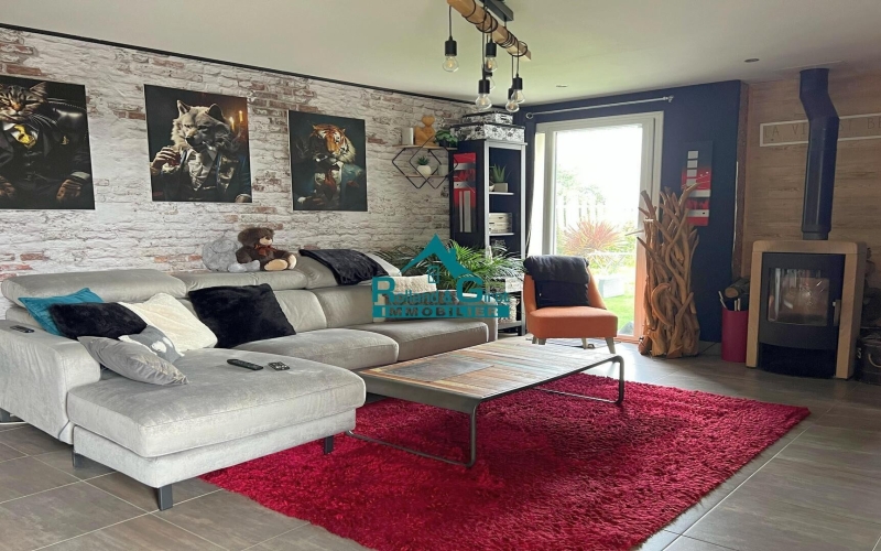 Elle se compose d'un salon chaleureux avec poêle à bois, d'une spacieuse cuisine séparée, tous deux orientés plein sud et baignés de lumière. Côté nuit, vous trouverez trois chambres lumineuses, idéales pour accueillir famille ou invités. A l'extérieur, vous profiterez d'un grand jardin arboré, d'une belle terrasse en bois de 30 m² plein sud, parfaite pour les repas en extérieur, et d'une seconde terrasse orientée nord-est, agréable lors des fortes chaleurs estivales.