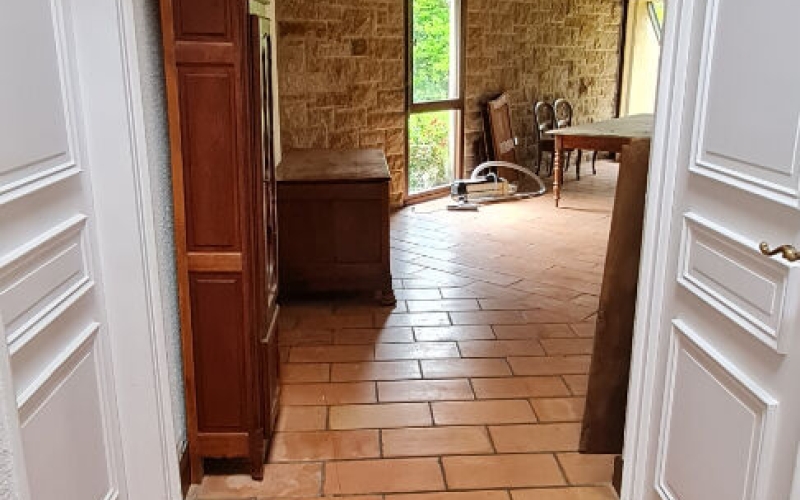Au RDC , un vaste salon séjour avec cheminée de caractère, exposé plein sud, une cuisine dinatoire, une arrière cuisine, 1 belle suite parentale , WC.