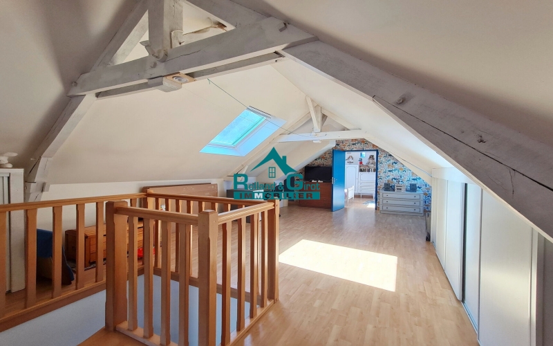 Au rez de chaussée, vous trouverez une entrée fonctionnelle avec des rangements, une cuisine équipée et aménagée, communiquant sur un salon/séjour lumineux et chaleureux avec son poêle à bois orientable et donnant sur un accès directe à la terrasse privative, WC indépendant, buanderie pouvant être transformée en salle d'eau et chambre, offrant ainsi la possibilité d'avoir une vie de plain-pied. A l'étage au-dessus du salon/séjour, une vaste pièce de 51 m² au sol avec coin nuit laisse libre votre imagination concernant ce lieu (local professionnel, bureau, salle de jeux?), et sur l'autre partie de l'habitation un deuxième escalier vous conduit à trois autres chambres dont une suite parentale avec dressing et salle d'eau privative, une salle de bains avec WC vient compléter cet étage. Un grenier non aménagée et accessible par un escalier escamotable offre encore une superficie supplémentaire.
