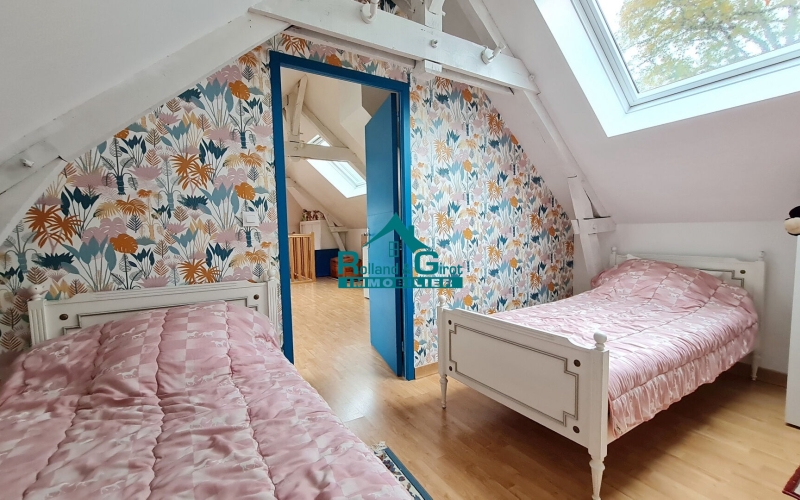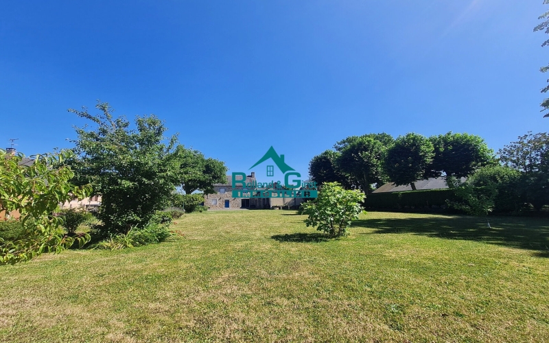 Attenant à la maison se trouve un double garage de plus de 40 m² avec portes motorisées, donnant sur une belle cour bitumée avec portail électrique et terrasse bois, pouvant accueillir plusieurs véhicules. Pour le reste du terrain, un vaste jardin clos ayant une partie constructive.