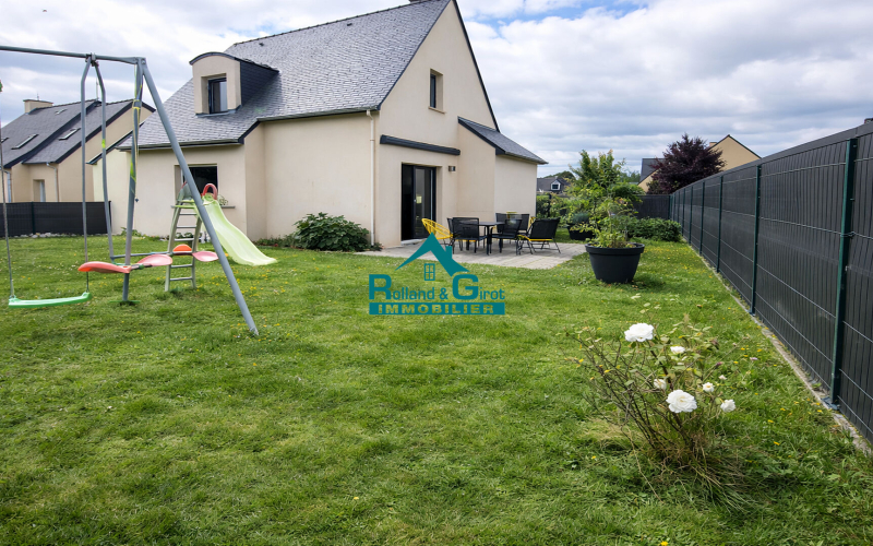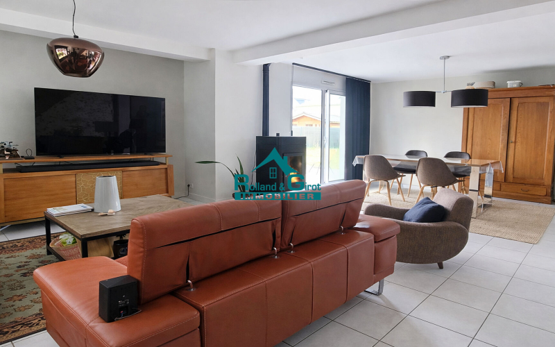 Découvrez cette maison de 106 m² située à Sens de Bretagne, exposée plein sud-est, offrant un cadre de vie idéal sur un terrain de 500 m². Construite en 2010 et en très bon état, cette maison comprend 6 pièces dont 4 chambres, avec une chambre au rez-de-chaussée et sa salle d'eau pour plus de confort. La cuisine aménagée et équipée, et la grande pièce de vie équipée d'un poêle à granulés garantissent une ambiance chaleureuse. Vous bénéficierez également d'une salle de bain et de deux WC. Les fenêtres en aluminium double vitrage et les volets roulants assurent une bonne isolation. Pour le stationnement, deux places extérieures et couvertes sont disponibles. Située à proximité des écoles (École primaire publique de Sens de Bretagne, École Saint-Jean Bosco), commerces (boulangeries, supermarché, pharmacie, boucherie), services (poste, médecins, restaurants), cette maison est parfaite pour une famille cherchant confort et praticité. Référence 5441lch. Contactez Rolland et Girot Immobilier pour organiser une visite et saisir cette opportunité unique ! (4.90 % honoraires TTC à la charge de l'acquéreur.)