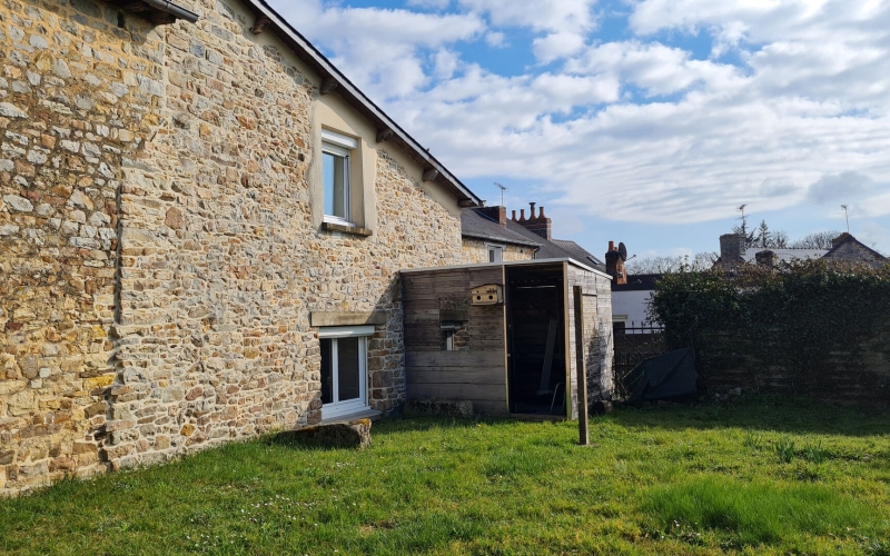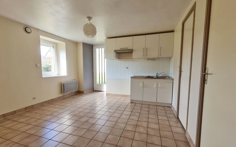Au rez-de-jardin, centre bourg à 5 km de Liffré, un appartement de type 2, comprenant : un séjour avec coin cuisine aménagée, une grande chambre séparée, un espace buanderie, une salle d'eau avec WC. Jardin commun. Chauffage électrique.