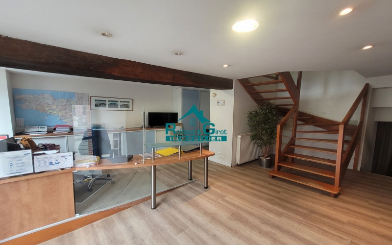 Implantez votre activité dans ces bureaux de 148m², situé dans le centre-bourg de la commune d'Acigné, accessible en train et en bus . Vous y trouverez: au rez-de-chaussée: un bel espace d'accueil, un bureau, un WC, une salle de réserve. A l'étage, le grand palier mène à deux bureaux d'environ 11m² chacun, une salle de réunion, un WC et une salle de pause. Au-dessus de la mezzanine, un espace de rangement d'archives est aménagé et facilement accessible.