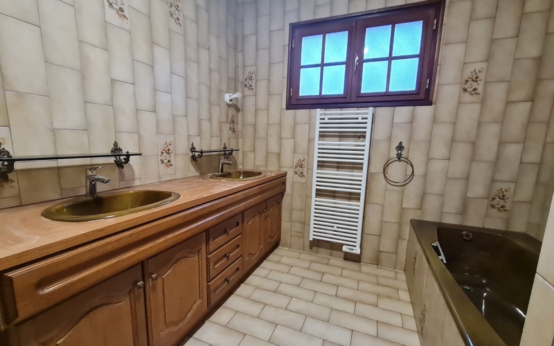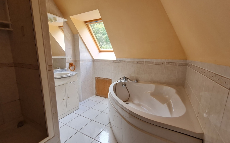 A l'étage, 4 belles chambres dont une d'enfant, une salle de bain avec douche et baignoire, WC indépendant.